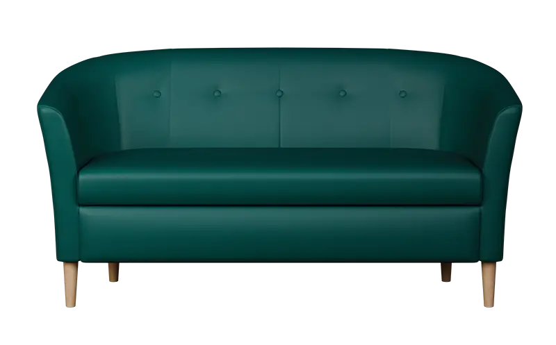 2-místné křeslo v jedinečném designu, ručně prošívaný opěrák s ozdobnými knoflíky, dřevěné masivní nohy v barvě přírodního dřeva