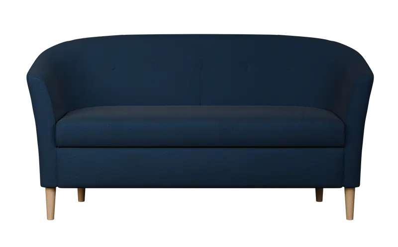 2-místné křeslo v jedinečném designu, ručně prošívaný opěrák s ozdobnými knoflíky, dřevěné masivní nohy v barvě přírodního dřeva