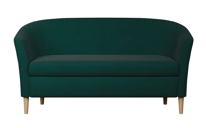 2-místné křeslo v jedinečném designu, ručně prošívaný opěrák s ozdobnými knoflíky, dřevěné masivní nohy v barvě přírodního dřeva