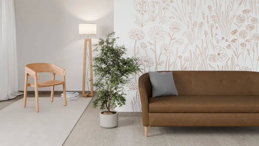 3-místné křeslo v jedinečném designu, ručně prošívaný opěrák s ozdobnými knoflíky, dřevěné masivní nohy v barvě přírodního dřeva
