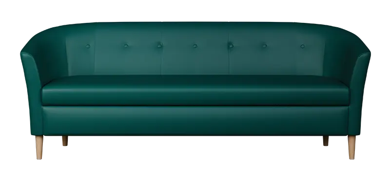 3-místné křeslo v jedinečném designu, ručně prošívaný opěrák s ozdobnými knoflíky, dřevěné masivní nohy v barvě přírodního dřeva