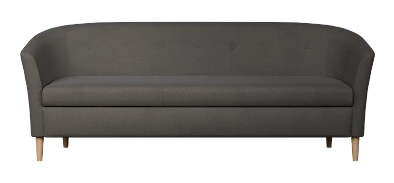 3-místné křeslo v jedinečném designu, ručně prošívaný opěrák s ozdobnými knoflíky, dřevěné masivní nohy v barvě přírodního dřeva