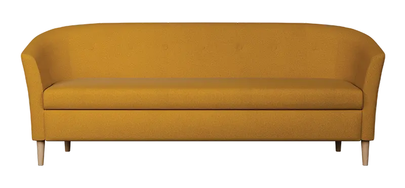 3-místné křeslo v jedinečném designu, ručně prošívaný opěrák s ozdobnými knoflíky, dřevěné masivní nohy v barvě přírodního dřeva