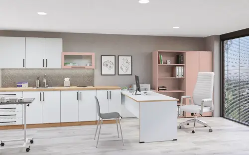 Kuchyňka reprezentuje firmu u zaměstnanců i návštěv. Nábytková řada MEDICUS PLUS vychází z naší nejoblíbenější nábytkové řady MEDICUS, ale obsahuje prémiové kování BLUM s lehkým a tichým chodem.