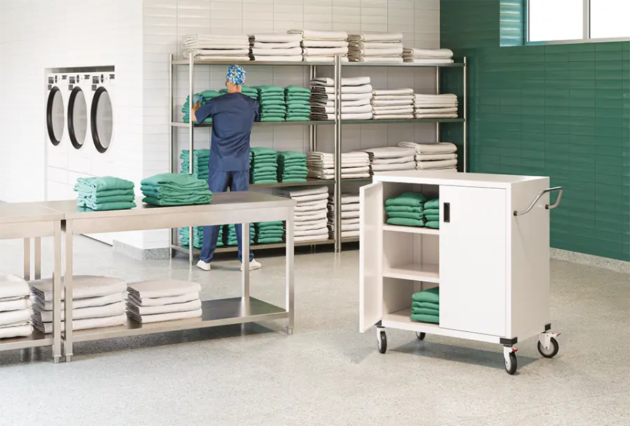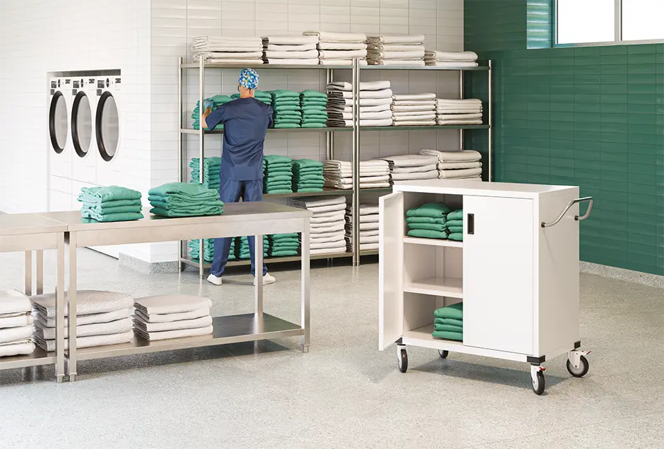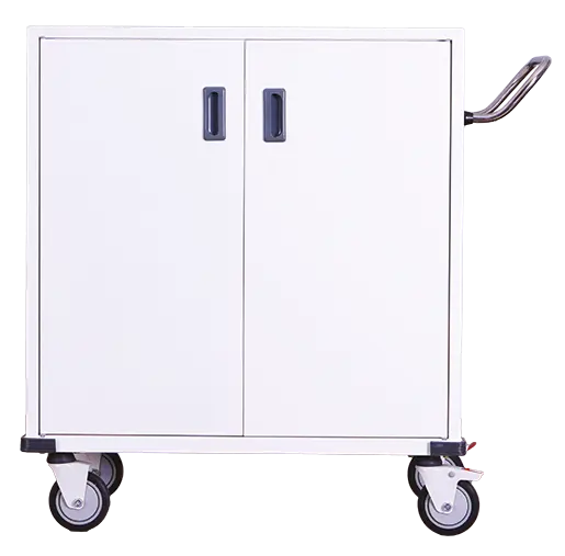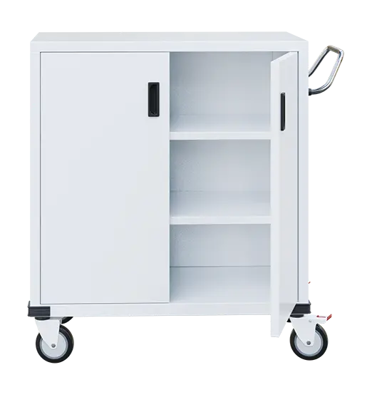 celokovový policový vozík opatřený práškovým lakem, nerezové tlačné madlo, 2 pevné police