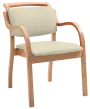 pohodlá židle s tvarovanými područkami, rám z vrstvené překližky opatřen transparentním lakem, madlo nad opěrákem pro snadnou manipulaci