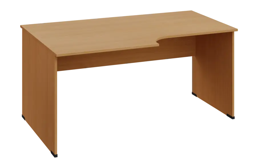 CRL 28 - 168 stůl kancelářský, rohový, levý, dřevěná podnož, deska 25 mm, široký 1600 mm, buk royal