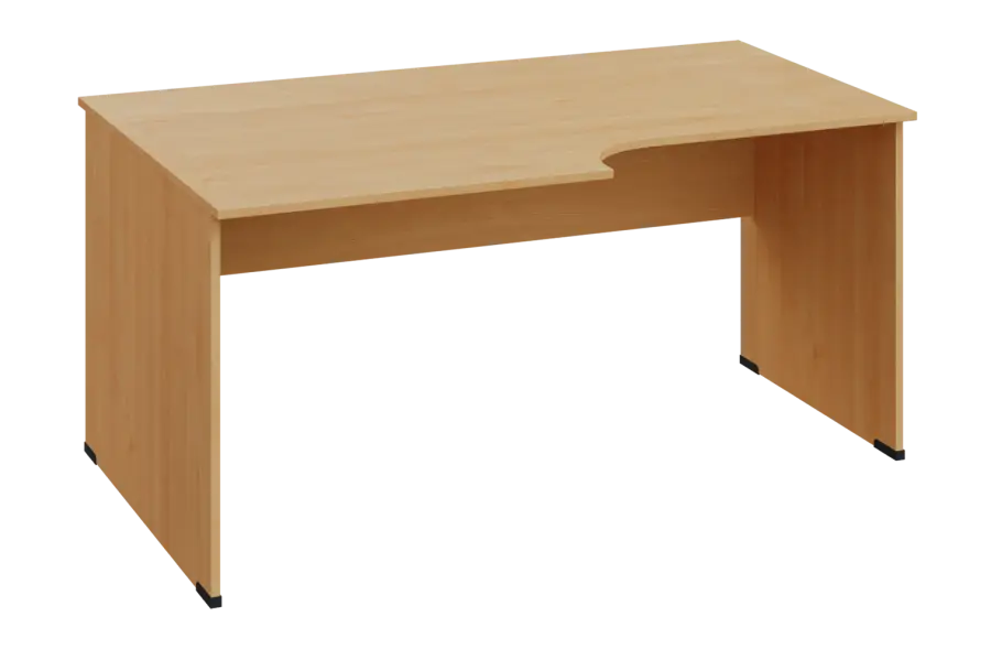 CRL 28 - 168 stůl kancelářský, rohový, levý, dřevěná podnož, deska 25 mm, široký 1600 mm, javor horský