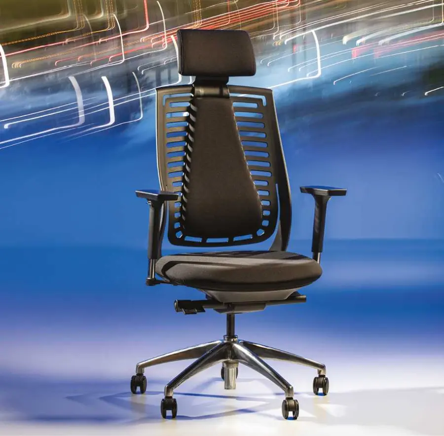 jedinečný design židle spojuje kvalitu a maximální funkčnost, kombinovaný opěrák z plastu a látky
