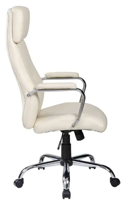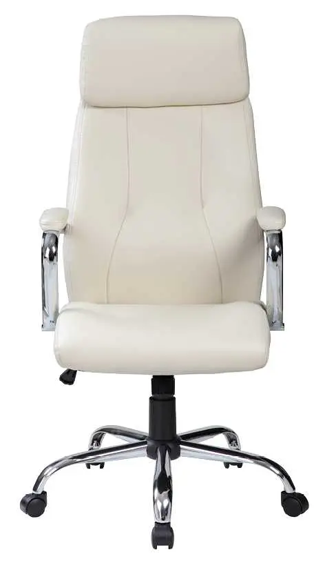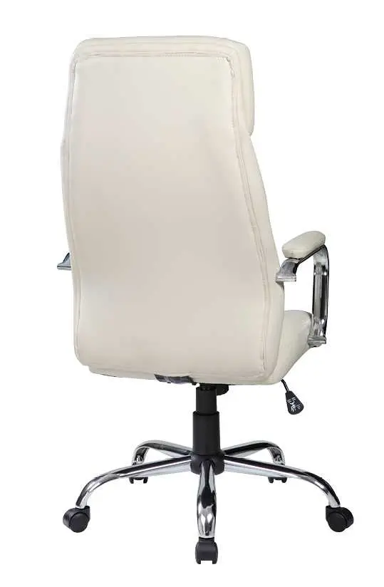 pohodlné křeslo s výraznou bederní částí, čalouněné v ekologické kůži, chromovaný kříž