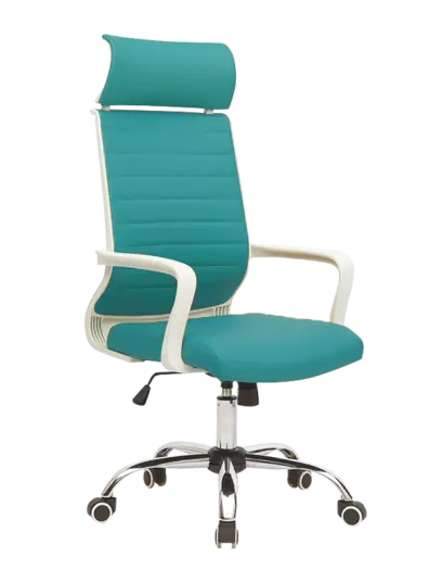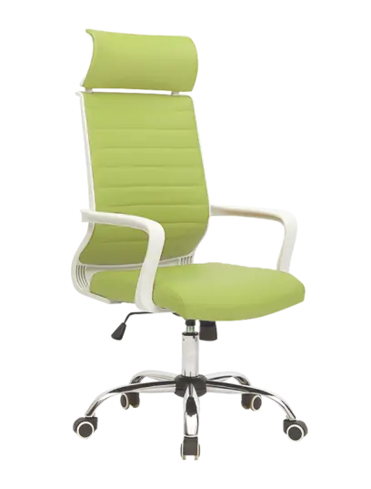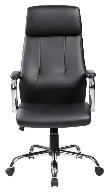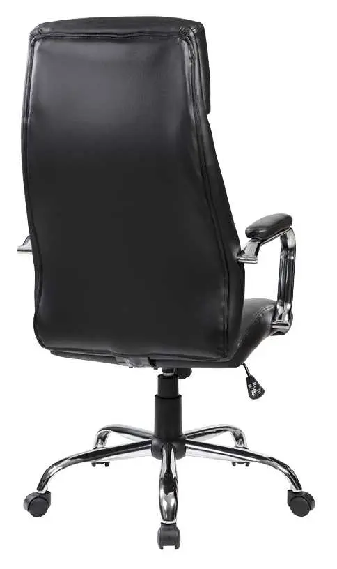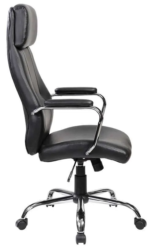 pohodlné křeslo s výraznou bederní částí, čalouněné v ekologické kůži, chromovaný kříž