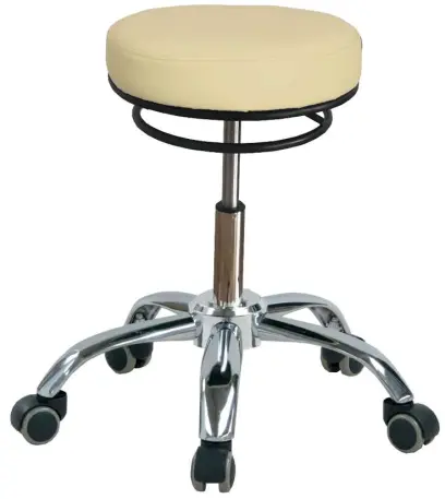 židle s nožním ovládáním, výškové nastavení sedu pomocí nožního ovladače nebo pomocí kruhového ovladače pod celým obvodem sedáku, čalouněno v ekologické kůži