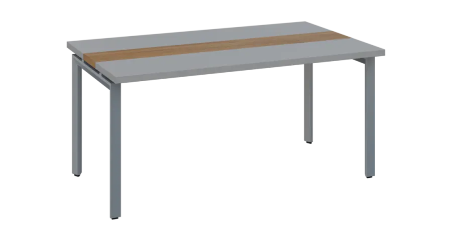 DOUBLE 160 pracovní stůl, kovová podnož stříbrná, deska 36 mm, široký 1600 mm, vložená deska ořech světlý