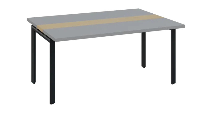 DOUBLE 161 pracovní stůl, kovová podnož černá, deska 36 mm, široký 1600 mm, šedá, vložená deska javor horský