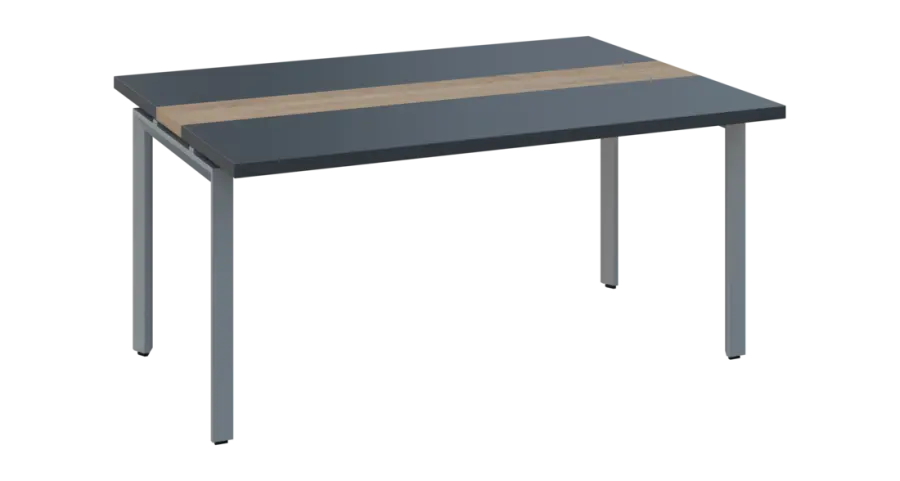 DOUBLE 161 pracovní stůl, kovová podnož stříbrná, deska 36 mm, široký 1600 mm, antracit, vložená deska dub bardolino