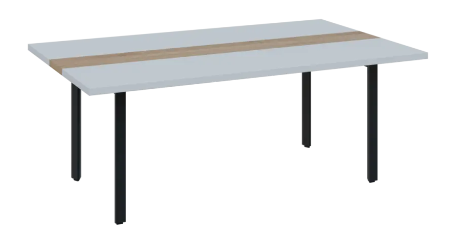 DOUBLE 201 pracovní stůl, kovová podnož černá, deska 36 mm, široký 2000 mm, bílá, vložená deska dub bardolino