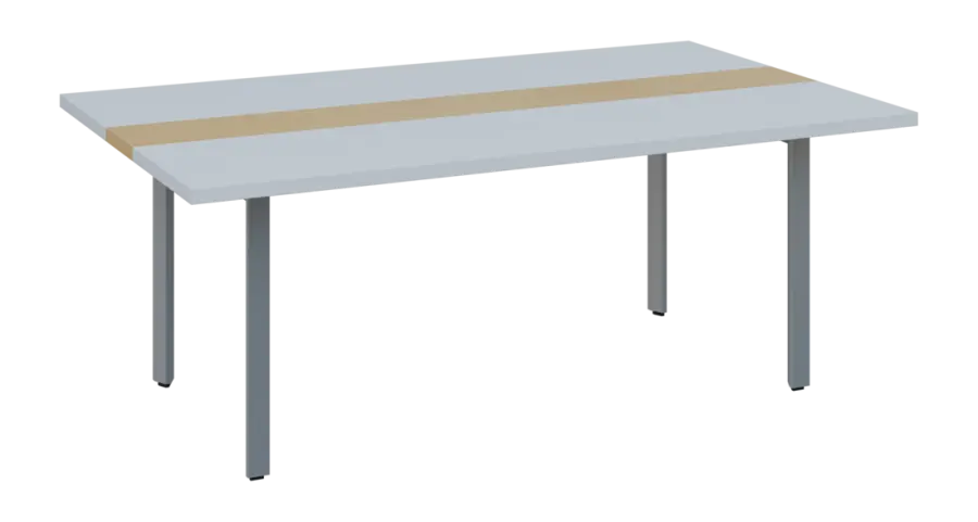 DOUBLE 201 pracovní stůl, kovová podnož stříbrná, deska 36 mm, široký 2000 mm, bílá, vložená deska javor horský