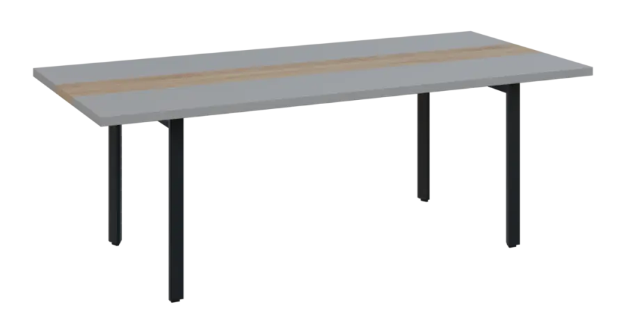 DOUBLE 220 pracovní stůl, kovová podnož černá, deska 36 mm, široký 2200 mm, šedá, vložená deska dub bardolino