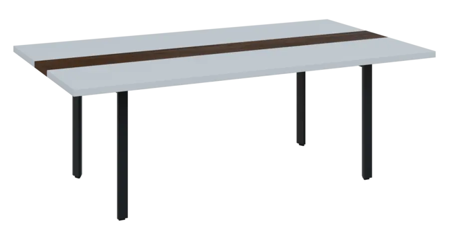 DOUBLE 221 pracovní stůl, kovová podnož černá, deska 36 mm, široký 2200 mm, bílá, vložená deska ořech královský
