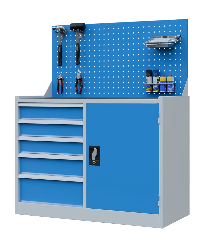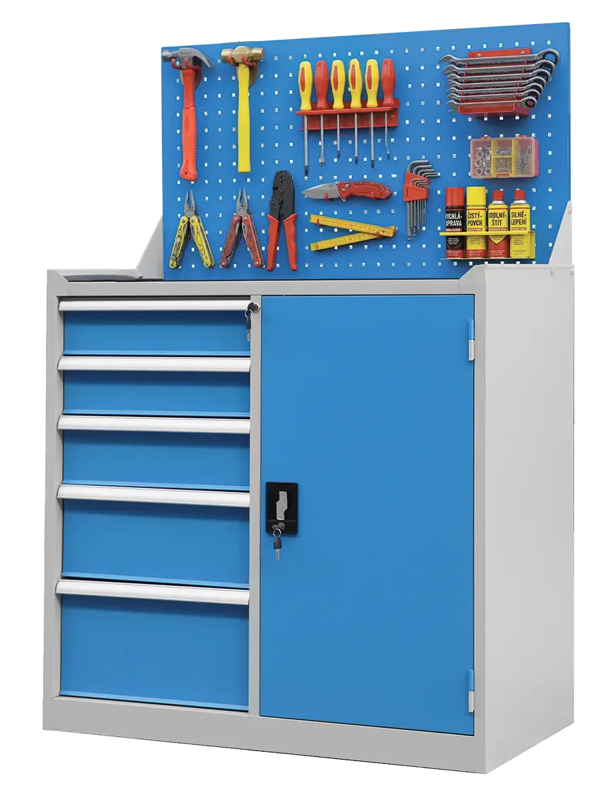 kovová svařovaná skříň s dvouplášťovou konstrukcí pro bezpečné skladování hořlavých látek a chemikálií, skříň má v bocích větrací otvory s tavnými pojistkami