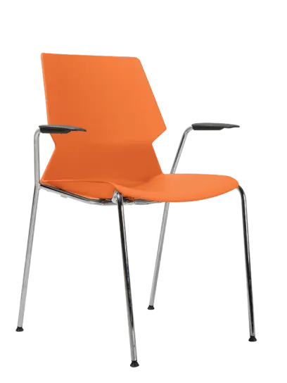 plastová židle oblých tvarů a zajímavého designu, jedinečnost tvoří jednotné barevné provedení plastové skořepiny a kovových nohou ve stejné barvě, plastové kluzáky na ochranu podlahových krytin