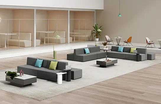 moderní pohovka s čistým, hranatým designem umožňuje sedět z obou stran, kvalitní výplň spolu s vysoce odolnou látkou zaručuje vysokou odolnost a pohodlné sezení, čalouněno v látce