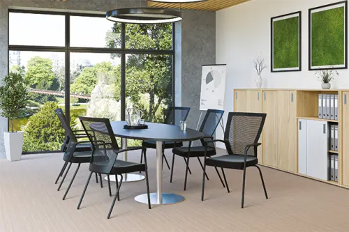 konferenční židle na módní černé kovové kostře, komfortní sedák ze studené pěny čalouněný koženkou, vysoce odolné plastové područky