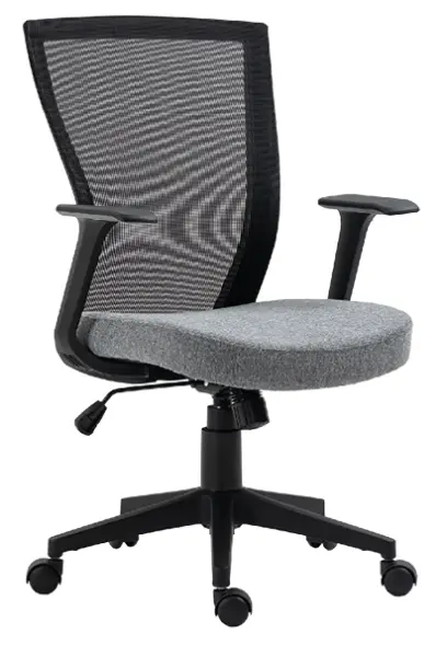prodyšný opěrák čalouněný síťovinou, houpací mechanismus s možností blokace v základní pozici, chromovaný kříž
