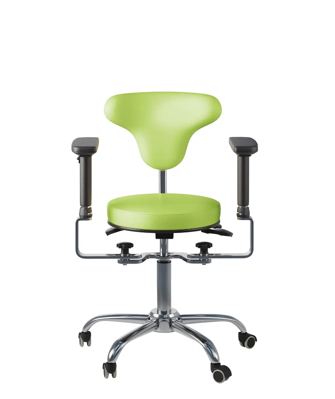 lékařská židle s vyšším sedem, ergonomicky tvarovaná zádová opěrka s nastavením výšky a sklonu, čalouněná ekologickou kůží, nastavitelné vysoké 3D područky