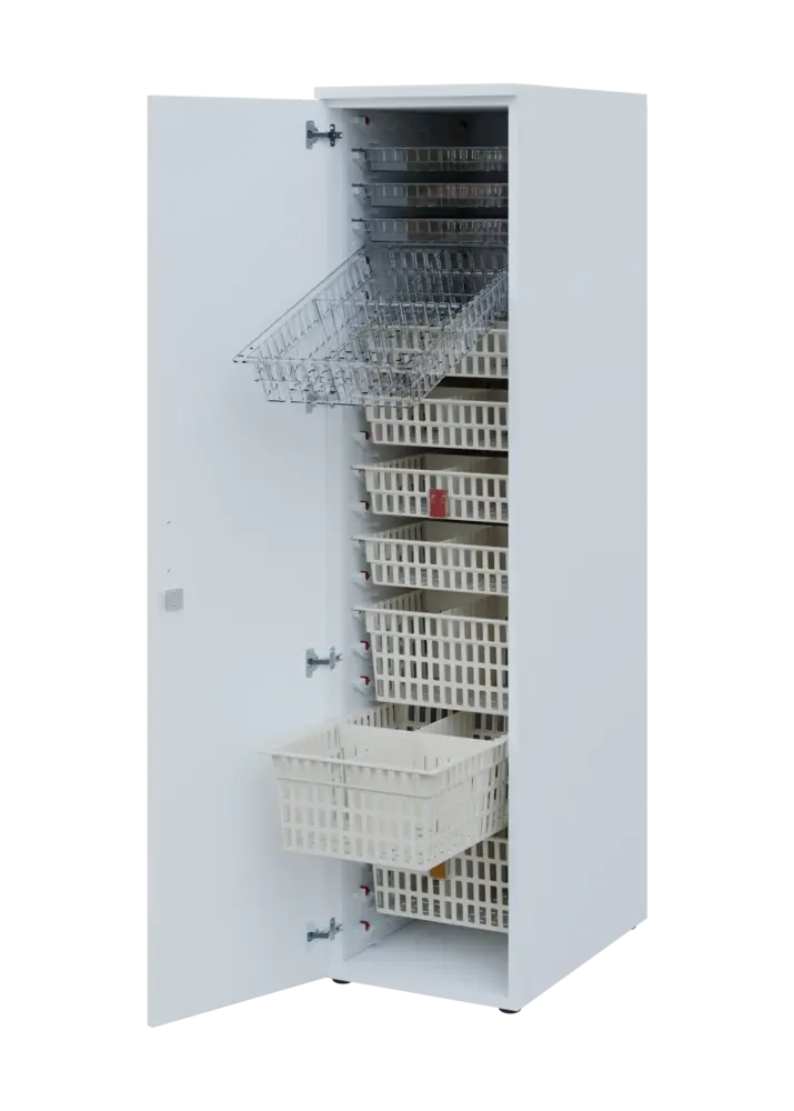 Skříně EUROMEDICA s koši MEDIBOX = nejpraktičtější uspořádání léků a zdravotnického materiálu
