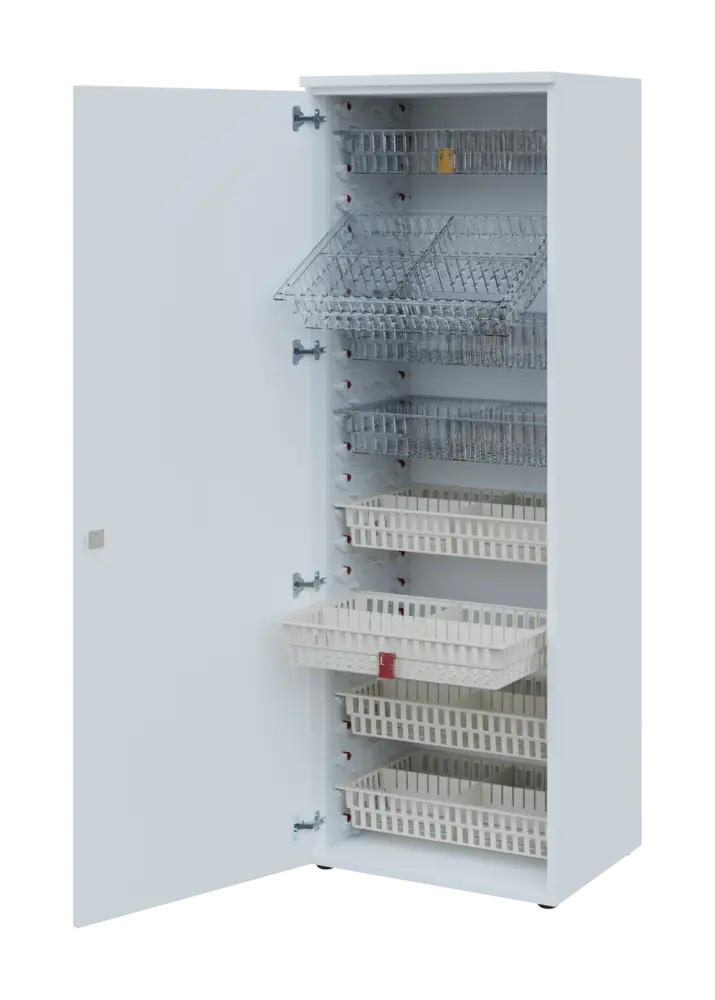 Skříně EUROMEDICA s koši MEDIBOX = nejpraktičtější uspořádání léků a zdravotnického materiálu