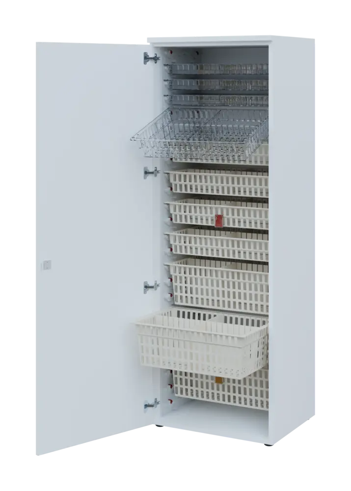 Skříně EUROMEDICA s koši MEDIBOX = nejpraktičtější uspořádání léků a zdravotnického materiálu