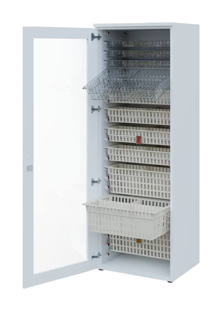 Skříně EUROMEDICA s koši MEDIBOX = nejpraktičtější uspořádání léků a zdravotnického materiálu