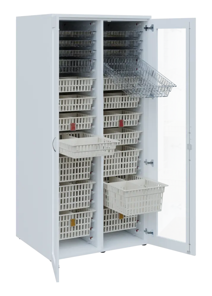 Skříně EUROMEDICA s koši MEDIBOX = nejpraktičtější uspořádání léků a zdravotnického materiálu