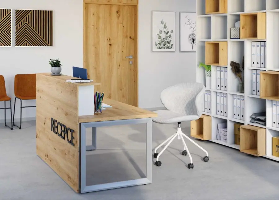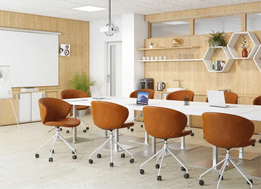 otočná pojízdná konferenční židle, designový kříž a píst v bílém laku, stavitelná výška sedu