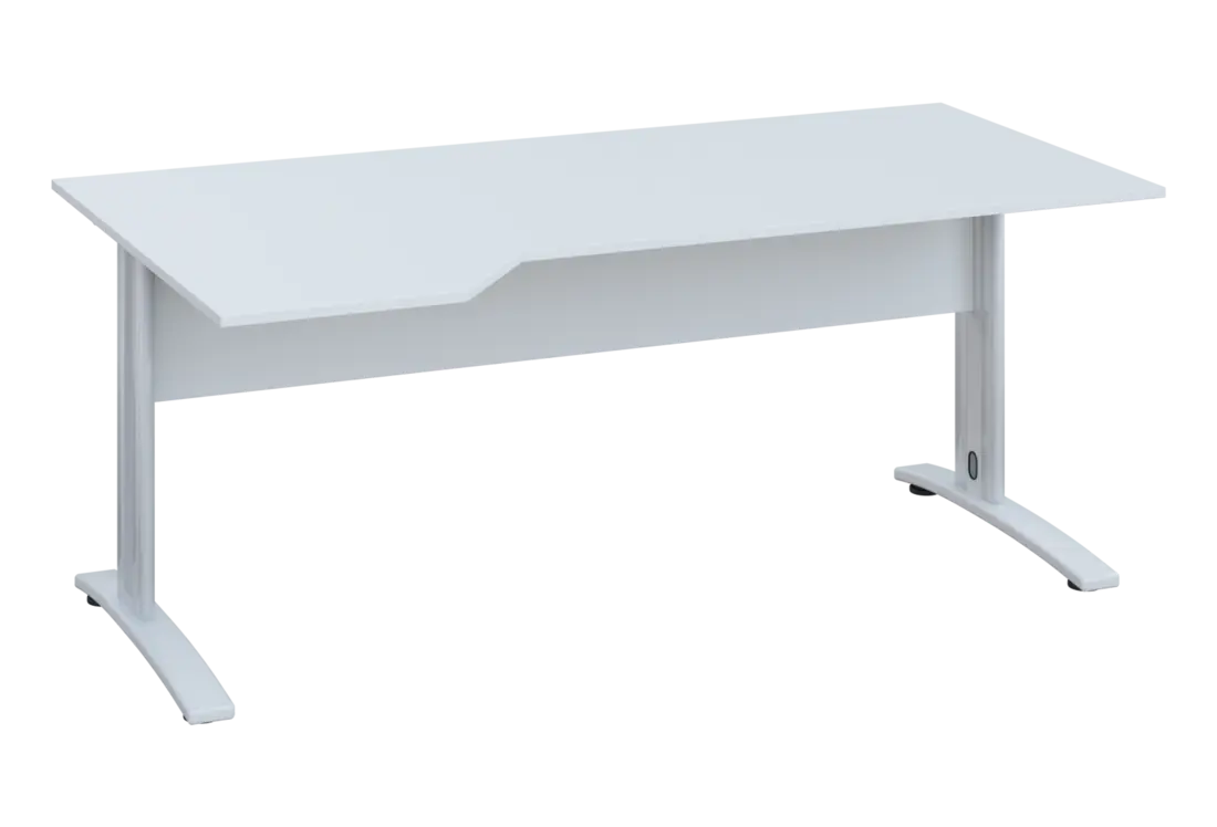EZK 18 - 184 stůl kancelářský, rohový, levý, kovová podnož bílá, deska 18 mm, široký 1800 mm, bílá