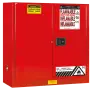 kovová svařovaná skříň s dvouplášťovou konstrukcí pro bezpečné skladování hořlavých látek a chemikálií, skříň má v bocích větrací otvory s tavnými pojistkami