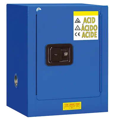 kovová svařovaná skříň s dvouplášťovou konstrukcí pro bezpečné skladování hořlavých látek a chemikálií, skříň má v bocích větrací otvory s tavnými pojistkami