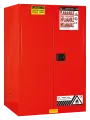 kovová svařovaná skříň s dvouplášťovou konstrukcí pro bezpečné skladování hořlavých látek a chemikálií, skříň má v bocích větrací otvory s tavnými pojistkami