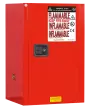 kovová svařovaná skříň s dvouplášťovou konstrukcí pro bezpečné skladování hořlavých látek a chemikálií, skříň má v bocích větrací otvory s tavnými pojistkami