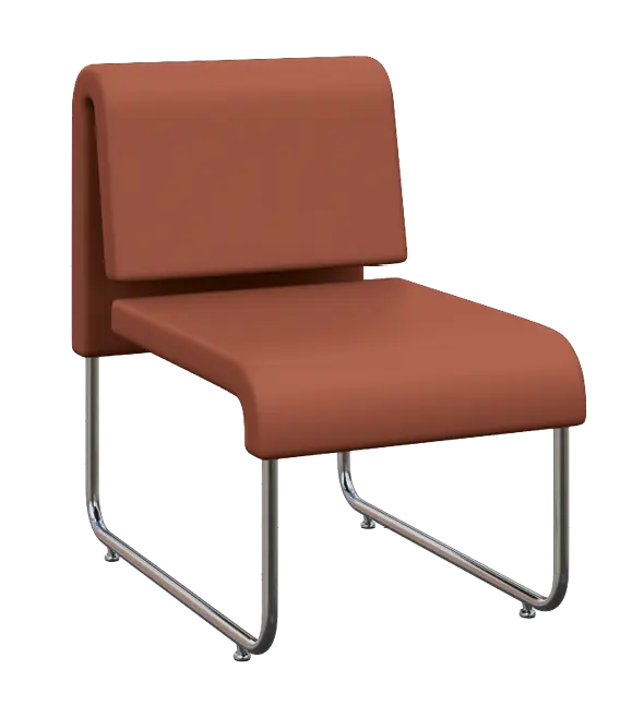 moderní designová židle s pohledovými zády, ližinová kostra vyrobena z chromované oceli, čalouněno speciální ekologickou kůží odolnou vůči poškrábání