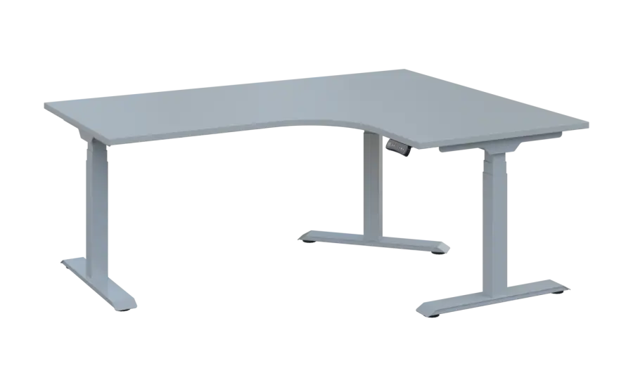 FLEXIERGO 90 180-140 výškově nastavitelný stůl, rohový, pravý, kovová podnož stříbrná, deska 25 mm, široký 1800 mm, šedá