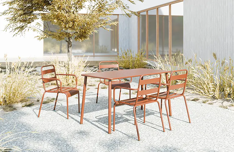 moderní svařované židle s lamelovým designem, odolná celokovová konstrukce, opatřena kvalitním práškovým lakem vhodným pro venkovní použití