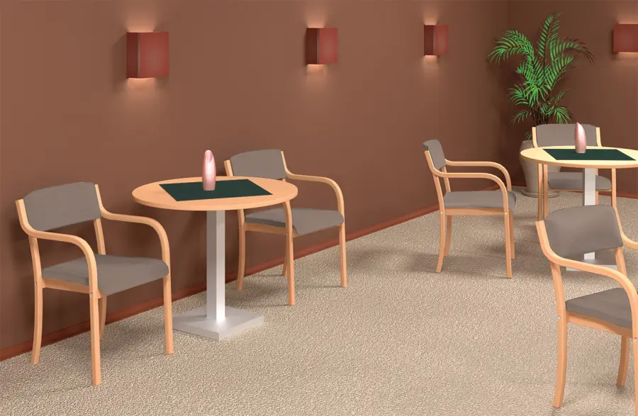 pohodlná křesílka s tvarovanými područkami, čalouněno koženkou, rám z vrstvené bukové překližky opatřený transparentním lakem