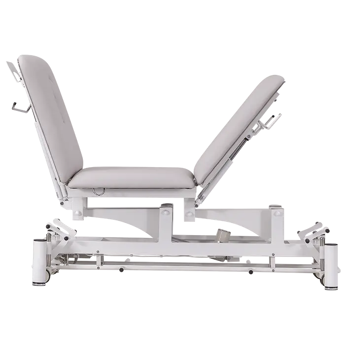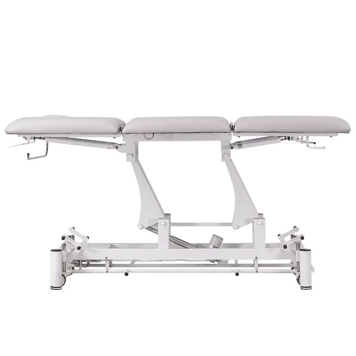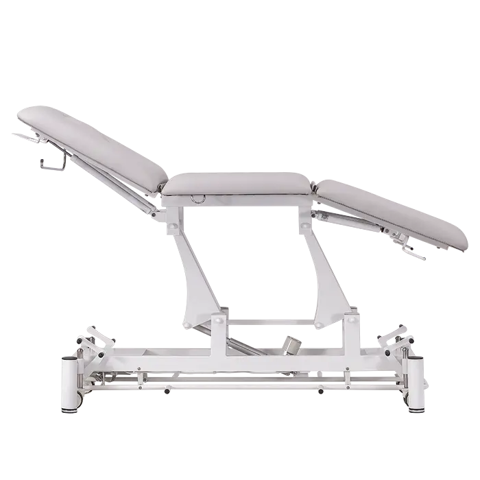 3-segmentové jednomotorové lehátko s elektrickým nastavením výšky stolu pomocí ručního ovladače nebo rámového nožního ovladače, hlavová část s otvorem pro obličej s krycí zátkou