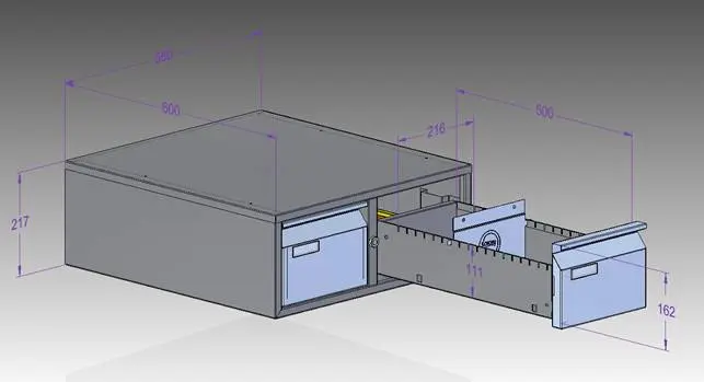 velmi pevná svařovaná konstrukce, kuličkové vedení zásuvek se 100% výsuvem, nosnost 1 zásuvky 40 kg