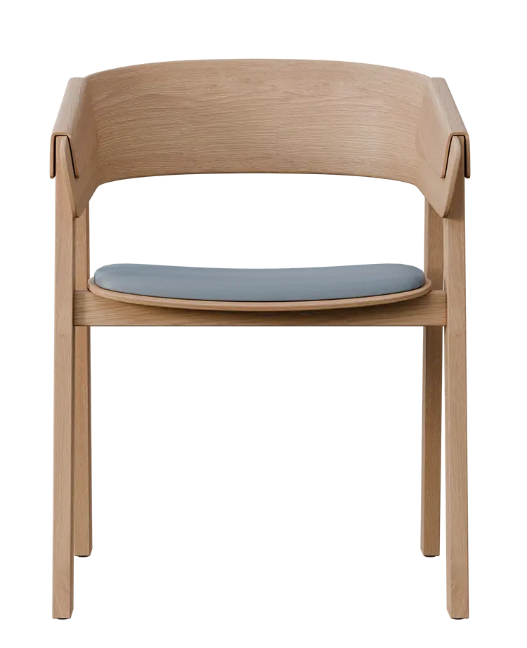 elegantní konferenční židle, vyrobena z dubového masivního dřeva, opěrák z ohýbané překližky tvoří jednolitý celek s područkami