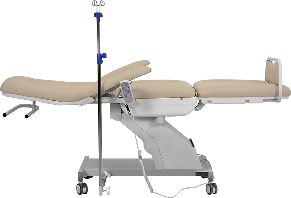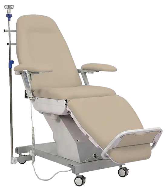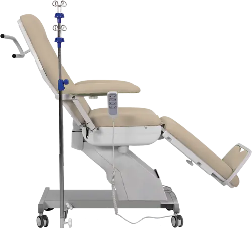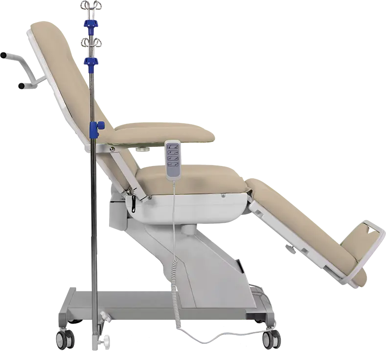 3-segmentové zdravotnické křeslo s multifunkčním využitím, např. pro odběry krve, dialýzu, chemoterapii, laboratorní vyšetření, elektrické nastavení výšky sedu