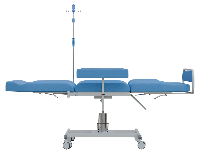 • 3-segmentové zdravotnické křeslo s multifunkčním využitím, např. pro odběry krve, dialýzu, chemoterapii, laboratorní vyšetření