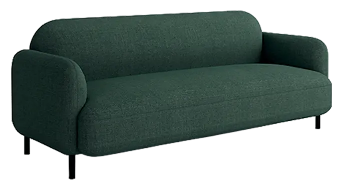 • výrazně polstrovaný sedák, opěrák i široké područky působí plně a útulně. Kovové nohy v černém laku dodávají lehkost a moderní kontrast k oblým tvarům